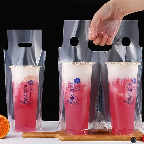 Plateau à deux tasses en plastique PE jetable pour café, lait, thé, boissons épaissies, sac de transport portable pour aliments et boissons à emporter