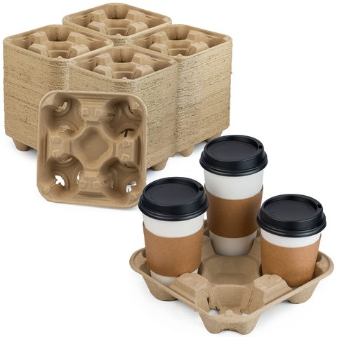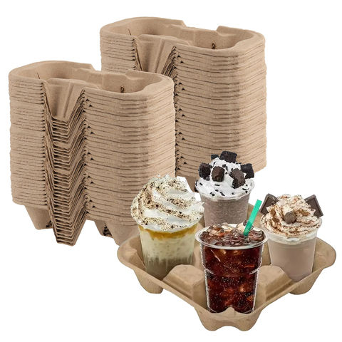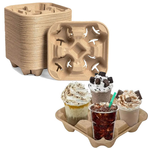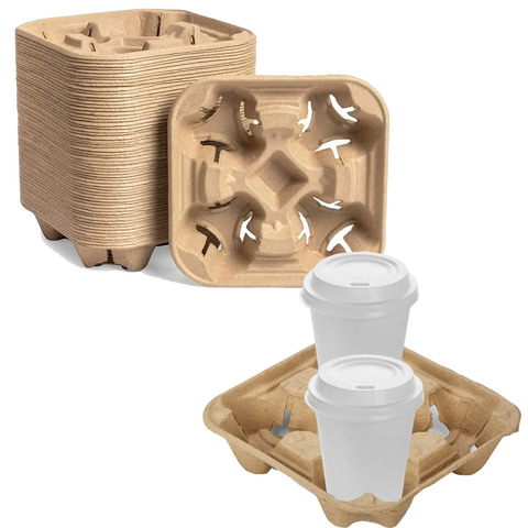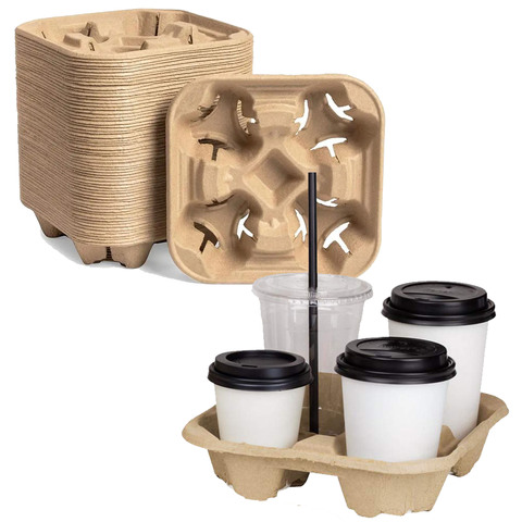 Plateau porte-gobelet à café en papier à 4 compartiments Support de pulpe jetable pour emporter